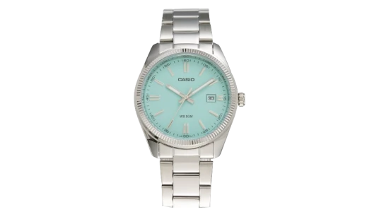 Elevate your personal style with the exquisite Casio Analog MTP-1302D-2A2V timepiece. This classic silver watch boasts an elegant turquoise blue dial that perfectly harmonizes with its luminous hands and markers, offering effortless legibility even in dimly lit environments. Its sleek stainless steel case and band combine sophistication with robustness, creating a timepiece that’s as enduring as it is refined.